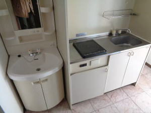 | キッチンはIHコンロが付いてます 横に洗面化粧台があります |